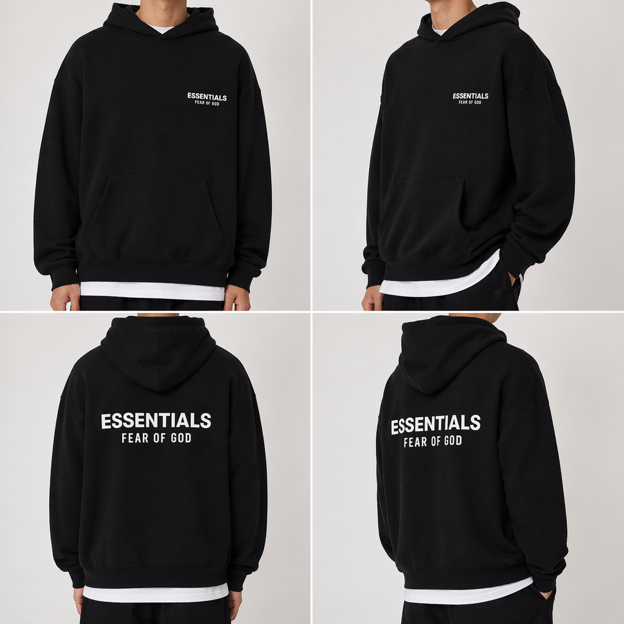 The Fear of God Essentials “Fleece Hoodie FW24 Black” represents the perfect fusion of luxury and minimalism, in line with Jerry Lorenzo’s design philosophy. AFV Clothes+2StockX+2 In this version of the Fall/Winter 2024 collection, the garment adopts an all-black colorway for a sober and versatile aesthetic.