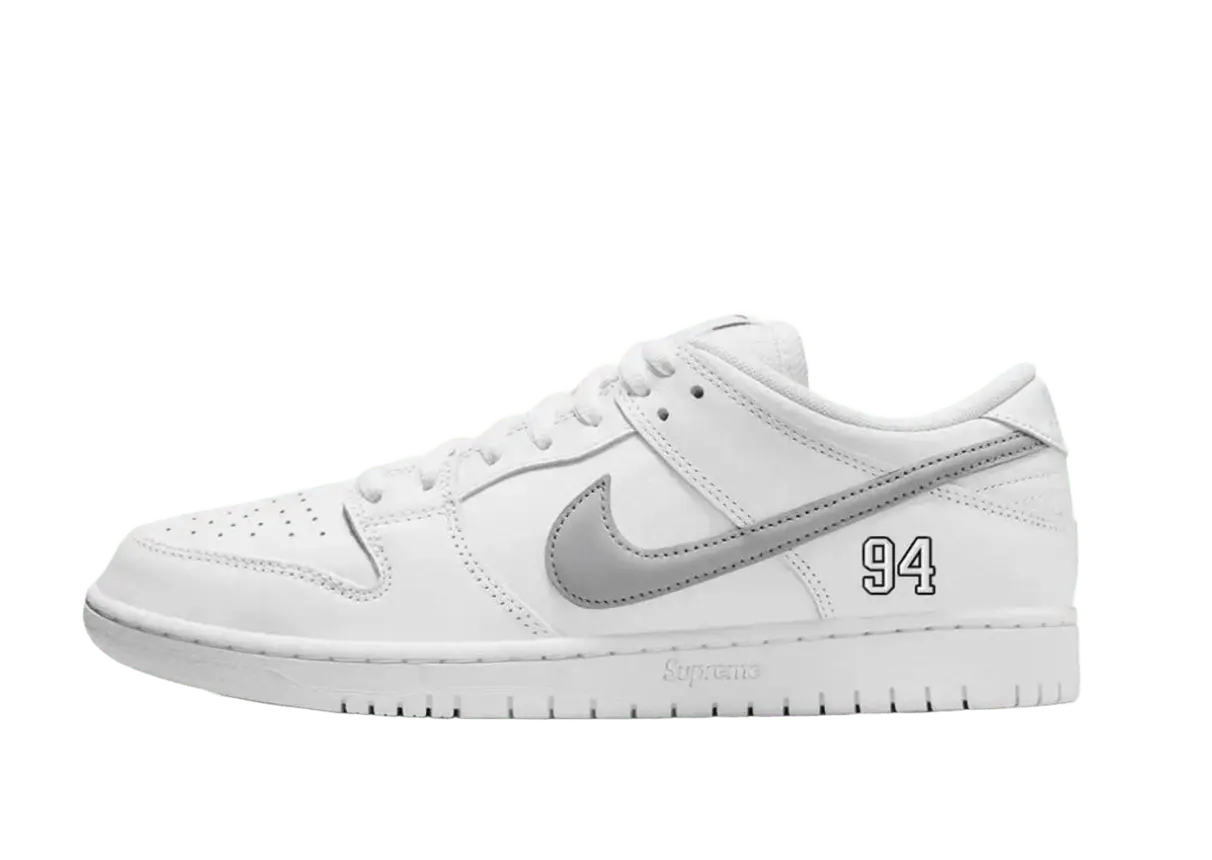 Nike SB Dunk Low Supreme 94 White Metallic Silver