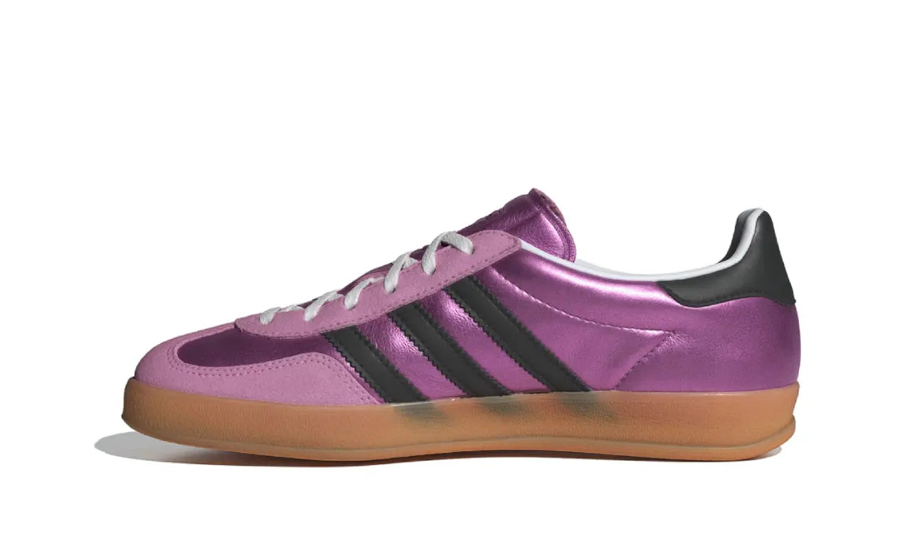 The Adidas Gazelle Indoor Bliss Lilac Black are sneakers that fuse style and comfort. With a sleek and modern design, these sneakers stand out for their soft lilac color combined with black details, perfect for an urban and sophisticated look. Their premium construction offers a comfortable fit, ideal for both everyday use and light sports activities. The rubber sole provides excellent traction, ensuring every step is secure. These sneakers are a must-have for those looking to stand out with footwear that reflects personality and trendiness on every occasion.