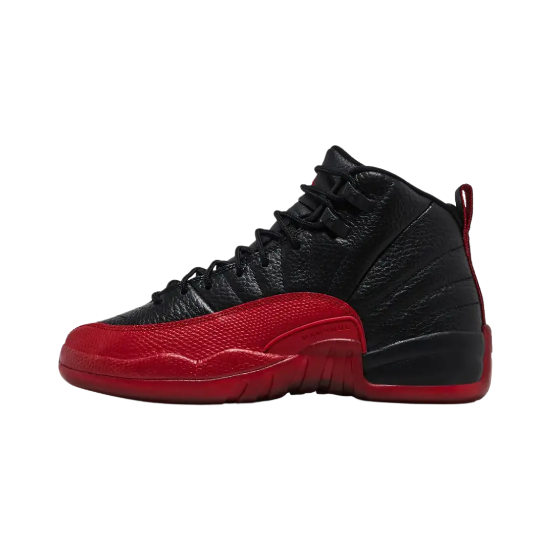 The Jordan 12 Retro Flu Game (2025) (GS) is an ode to the iconic drive and resilience that characterize the basketball legend. This model stands out for its sleek and sophisticated design, featuring a red and black colorway that captures the essence of the famous game. The premium leather upper provides comfort and durability, while cushioning technology ensures exceptional support with every step. The rubber outsole with strategic traction is ideal for on-court performance. This pair is not only a classic in sneaker history but also a collector's item.