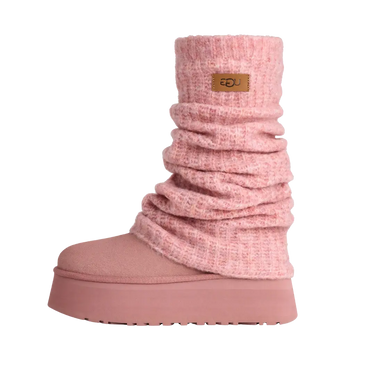 Discover the style and comfort of the UGG Classic Mini Dipper Legwarmer Boot in Pink Dawn. These boots feature a charming design in a soft dawn pink hue, combining elegance and warmth for your colder days. With a high-quality sheepskin finish, they offer a perfect fit and exceptional comfort. The cropped top and leg warmer detail add a modern and versatile touch, ideal for any occasion. Perfect for pairing with your everyday outfits, these boots are the perfect accessory you won't want to miss.