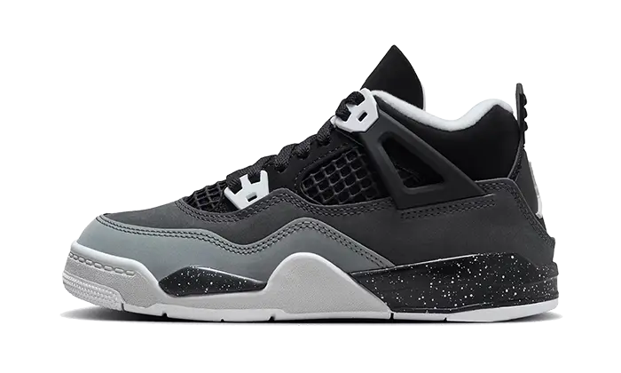 Las Air Jordan 4 Retro Fear presentan una combinación de tonos grises y negros en su parte superior de nubuck, acentuada por detalles blancos en los ojales y el logotipo Jumpman. La suela intermedia negra con salpicaduras blancas y la unidad Air visible en el talón ofrecen comodidad y estilo. Este modelo, parte del 'Fear Pack' de 2013, simboliza la determinación de Michael Jordan para superar sus miedos y alcanzar la grandeza.